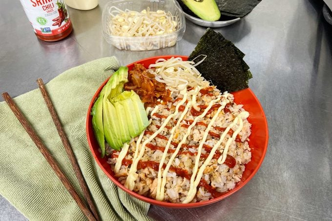 This went viral in the USA when a user made a sushi bowl by mixing leftover salmon, rice, soy sauce, and mayo.