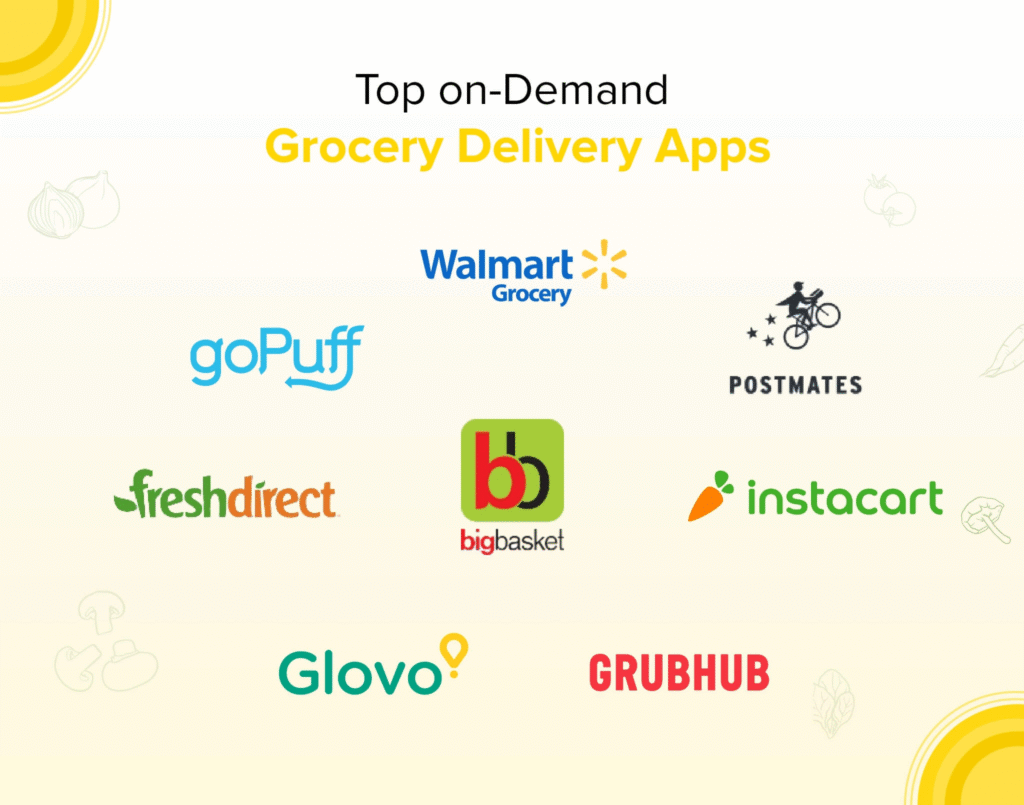 - Grocery apps (Instacart, Walmart).